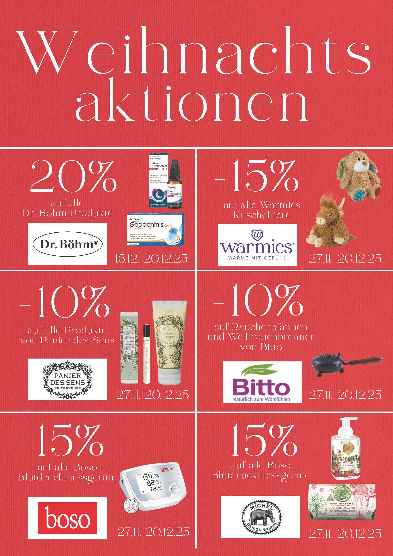 Außerhalb der Öffnungszeiten finden Sie die Bereitschaftsdienste der Umgebung hier: Notdienstplan Apotheken